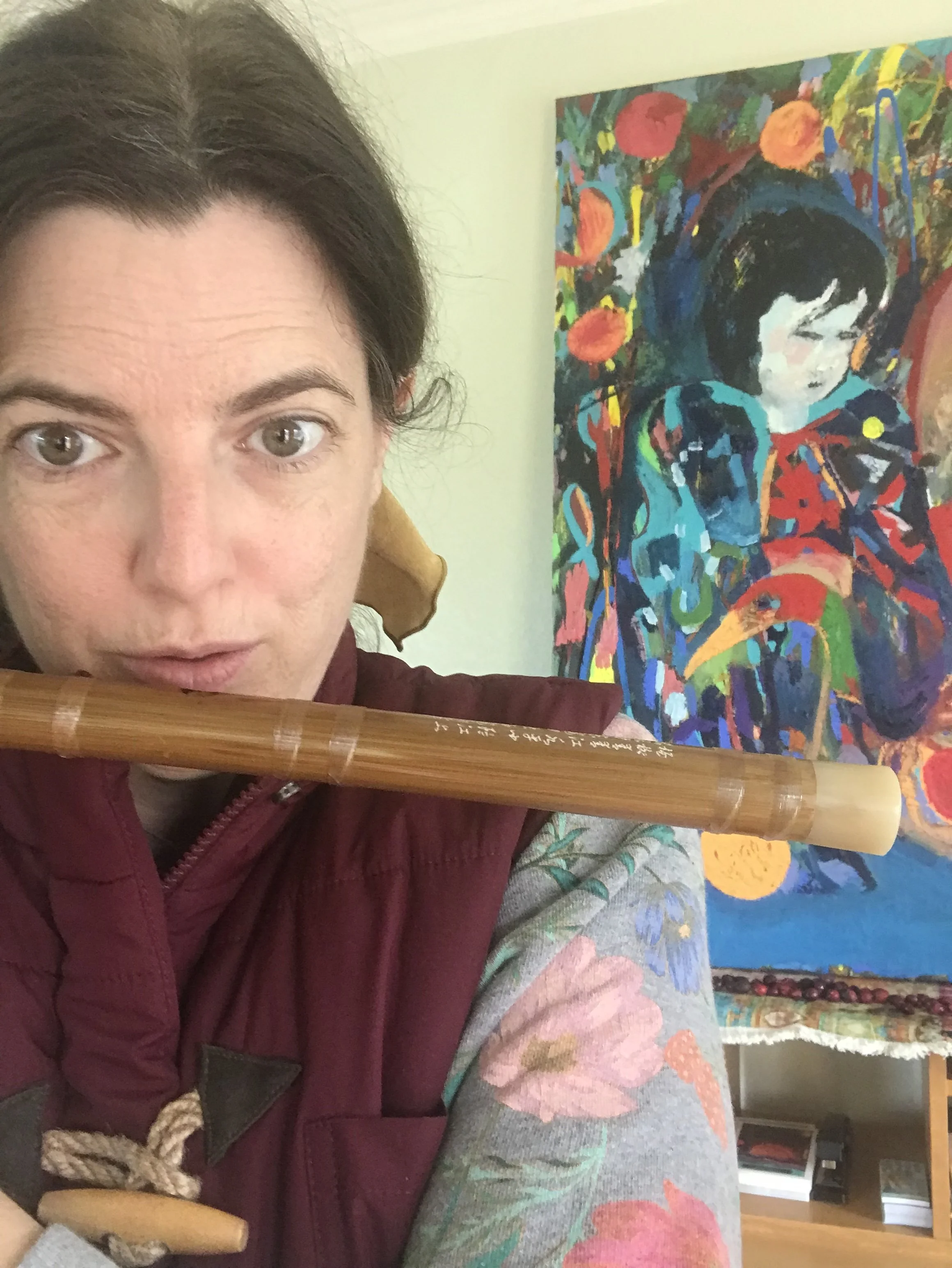 I’m returning to a gift from our first year here, my bamboo Chinese flute from Serge. I am just able to finger a few notes to play a short tune. Wishing you many moments to call your own. Thank you for reading from me.